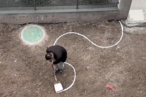 师傅在给小院做花圃规划,用铁锹轻松画出漂亮的弧线!