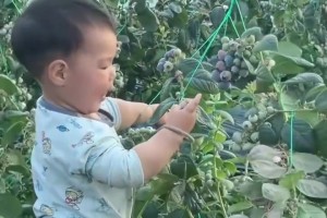 15 个月的孩子也太聪明了,在自家蓝莓园里吃蓝莓!!